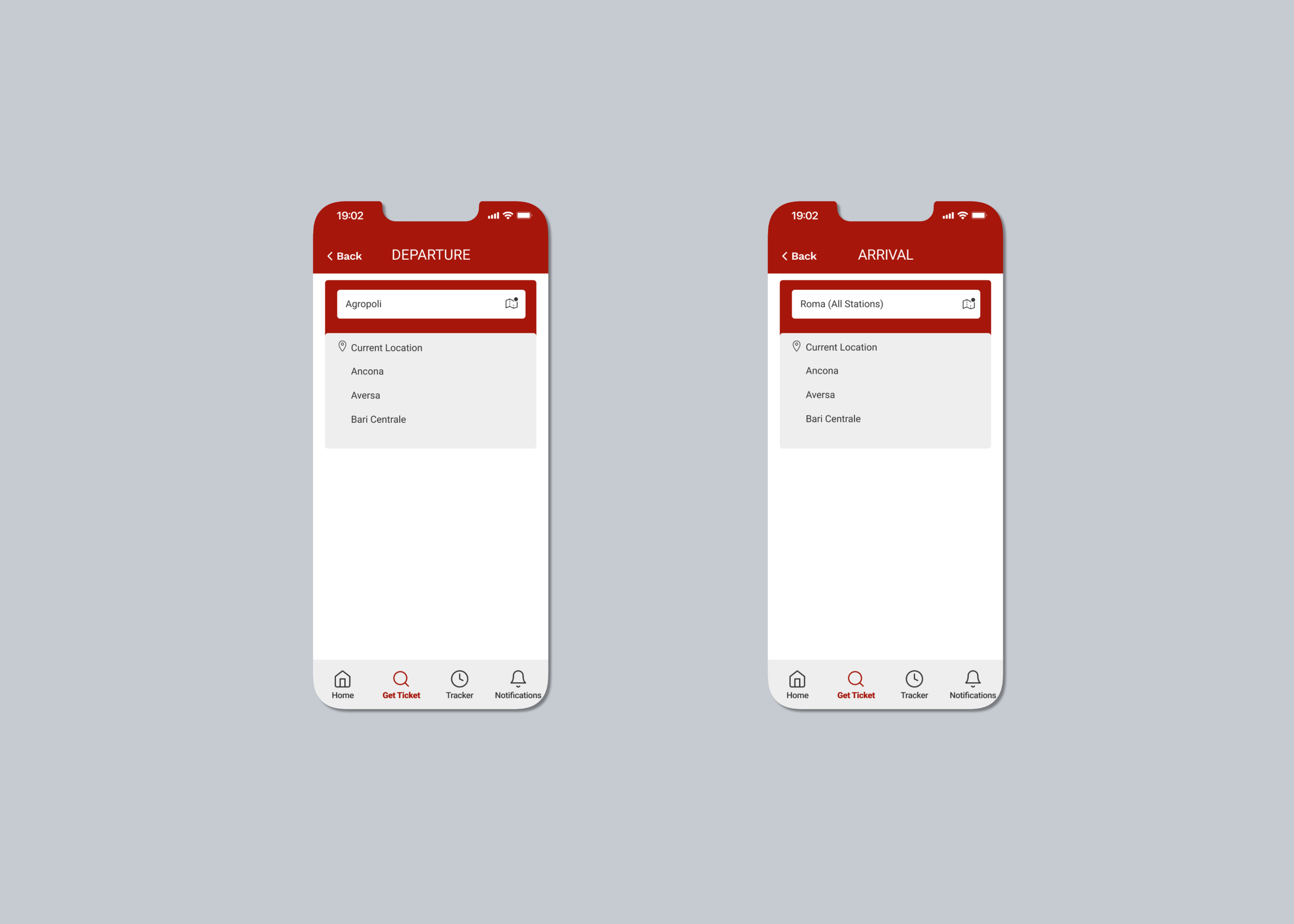On time table/ train selection screen we removed all duplicate and unnecessary information so that the main focus would be the important aspects of the page. In this example, Roma has two terminals. We highlighted these terminals to draw the user's attention to select the correct option.